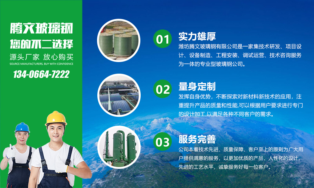 濰坊騰文玻璃鋼有限公司是一家集技術(shù)研發(fā)、項(xiàng)目設(shè)計(jì)、設(shè)備制造、工程安裝、調(diào)試運(yùn)營(yíng)、技術(shù)咨詢(xún)服務(wù)為一體的專(zhuān)業(yè)型玻璃鋼公司